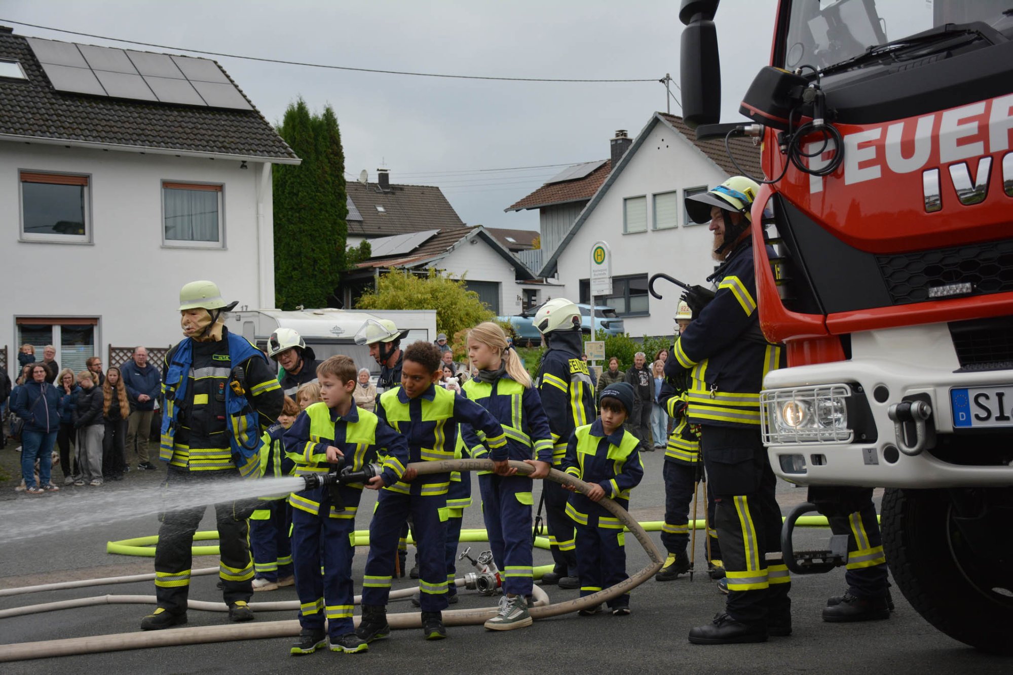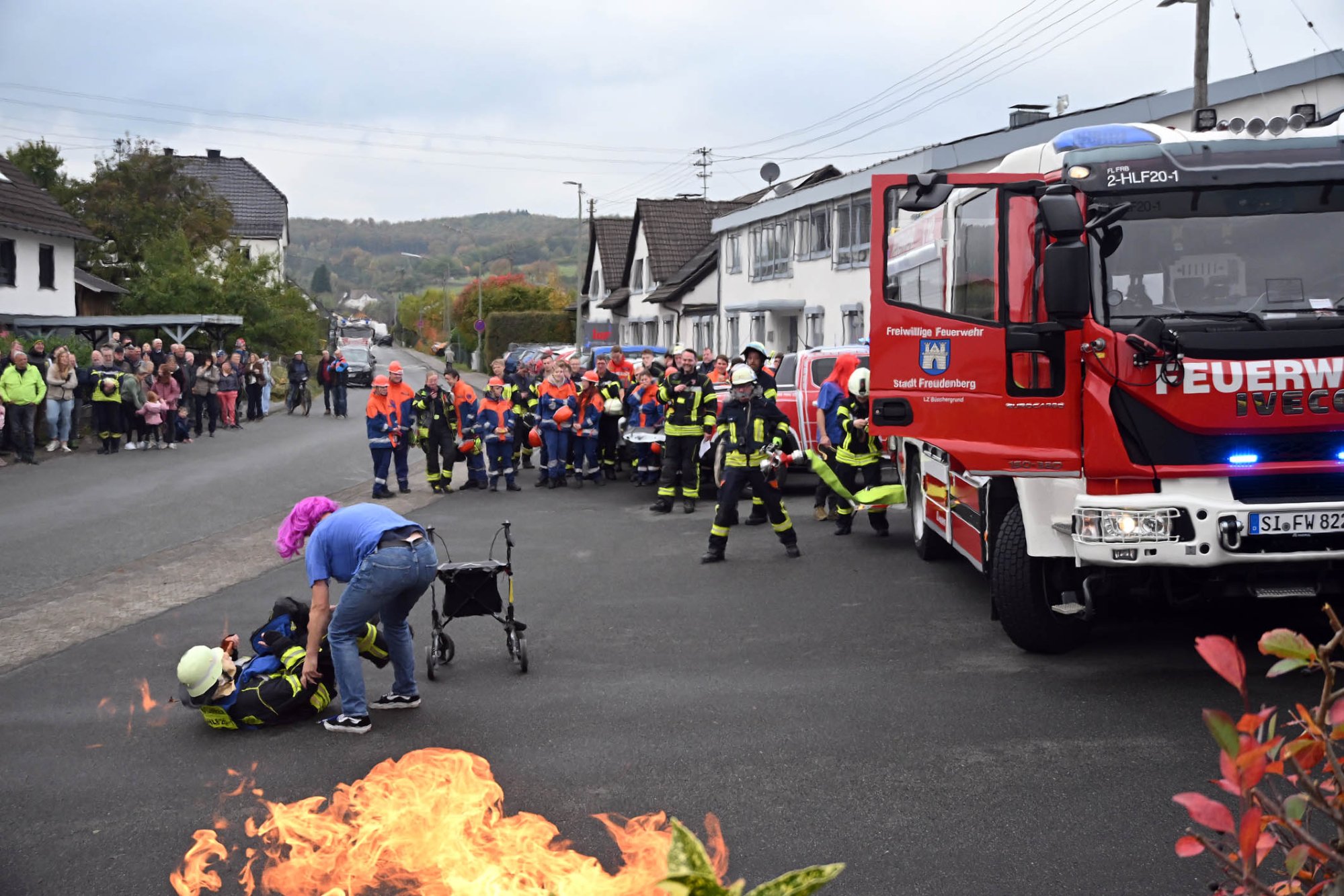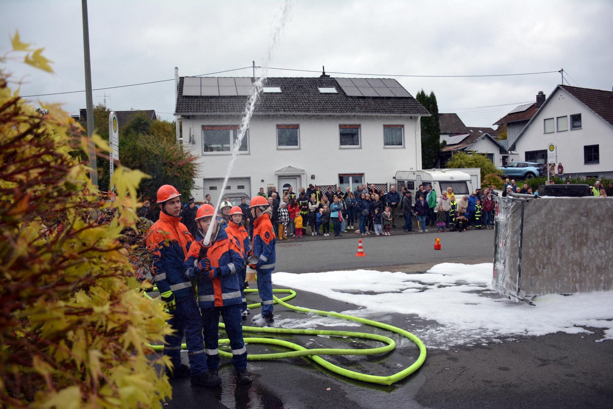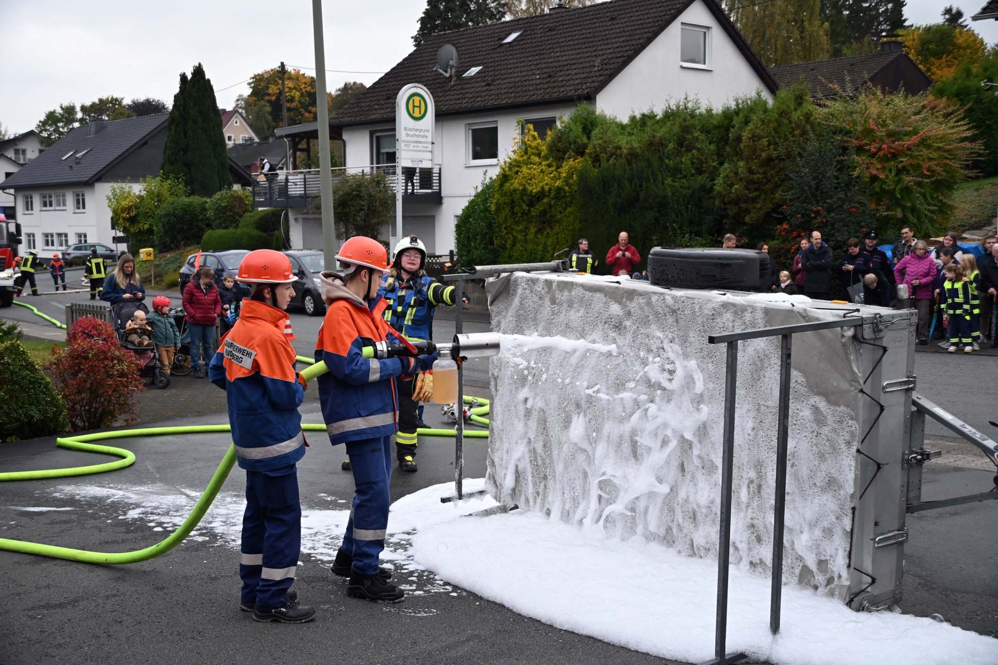 Büschergrund. Eine traditionelle und humoristische Herbstabschlussübung zeigte die Löscheinheit Büschergrund der Freiwilligen Feuerwehr Freudenberg am Samstagnachmittag. Vor zahlreichen Zuschauern, darunter auch Freudenbergs stellvertretender Wehrführer Maik Rother, der allen Beteiligten für den aktiven und engagierten Einsatz in dem zurückliegenden Jahr herzlich dankte.