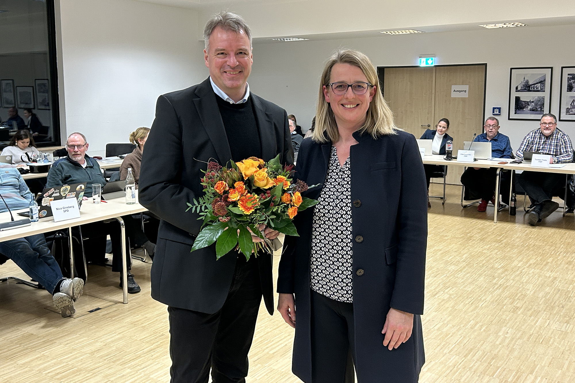 Trotzdem begann die zweite Sitzung des noch jungen Rates mit Blumen. Zum einen für Joachim Quast, der nach 26-jähriger Tätigkeit im Rat zum “Stadtältesten” ernannt wurde. Zum anderen für Stefan Fricke, der einstimmig zum neuen technischen Beigeordneten und Stadtbaurat für acht Jahre gewählt wurde (Foto unten). Die weiteren Tagesordnungspunkte wurden im Eiltempo abgearbeitet: