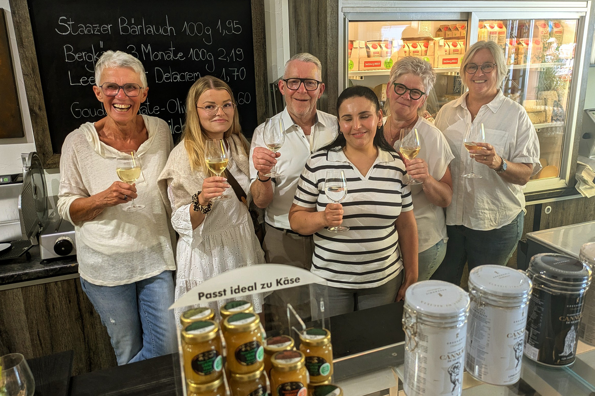 Damit das 25-jährige Jubiläum nicht vergessen wurde, hatten sich die fünf aktuellen Mitarbeiterinnen vor einiger Zeit getroffen und beschlossen, dieses Jubiläum zu feiern. Dazu wurden Freunde, Kollegen, Verwandte und Kunden von Ulrich Schneider für den letzten Juli-Samstag zum Weibeweg eingeladen. Zahlreiche Besucher folgten der Einladung, es wurden einige schöne Stunden mit allerlei Käseleckereien, diversen Weinen, verschiedenen Biersorten und Gesprächen vor dem Laden verbracht.