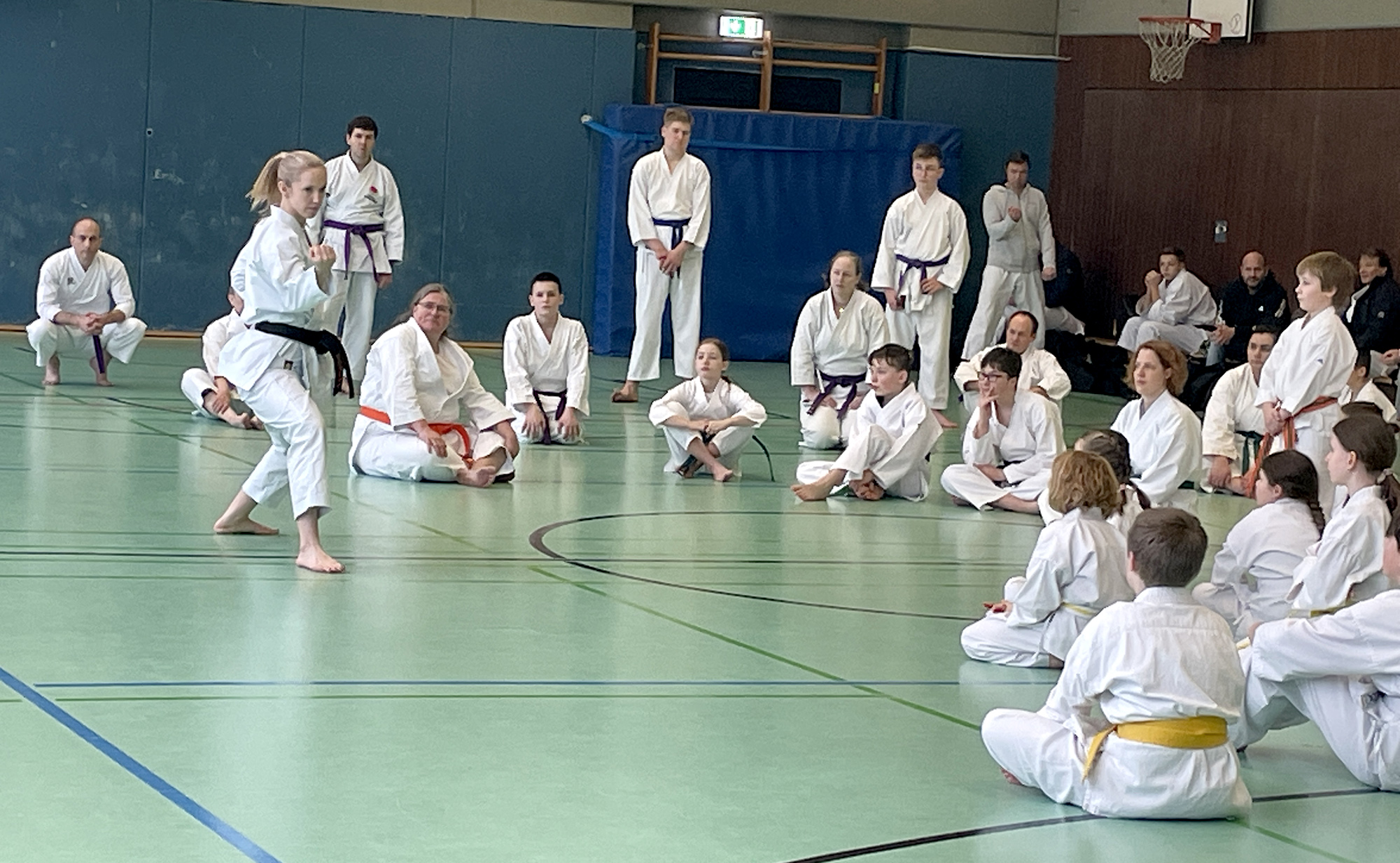 Aus ihren internationalen Erfahrungen und neuen Standardisierungvorgaben erstellte sie ein Konzept, das sie an die Sportlerinnen und Sportler weitergab. Dabei stellte sie eindrucksvoll heraus, wie wichtig das Zusammenspiel von Körper und Geist ist, um im Karate das volle Potenzial ausschöpfen zu können. Im Anschluss an die Veranstaltung nutzten 23 Karateka die Gelegenheit, eine Prüfung zum nächsthöheren Gürtel erfolgreich abzulegen.