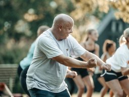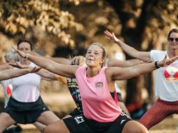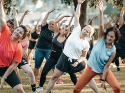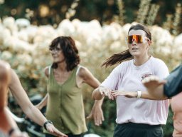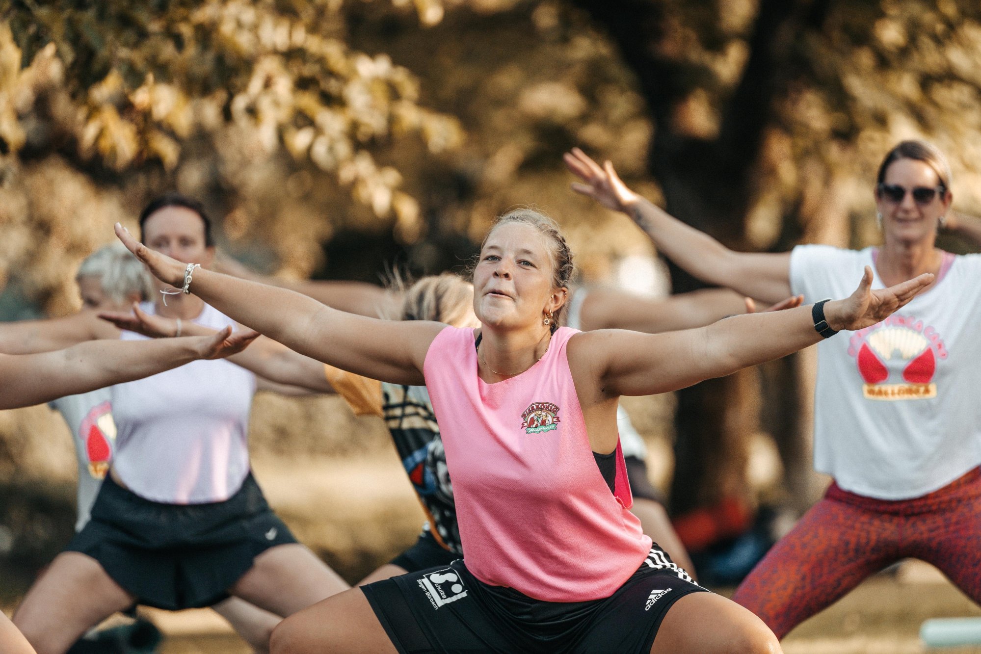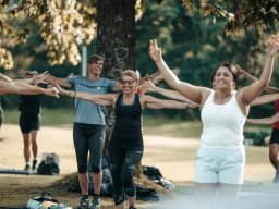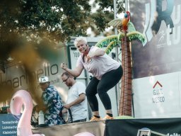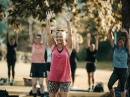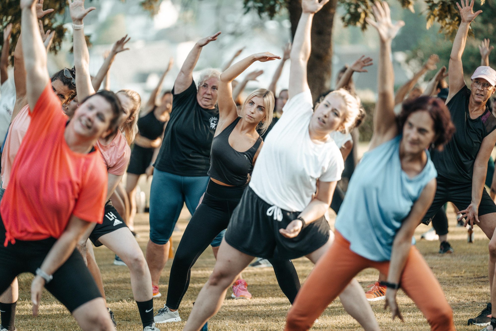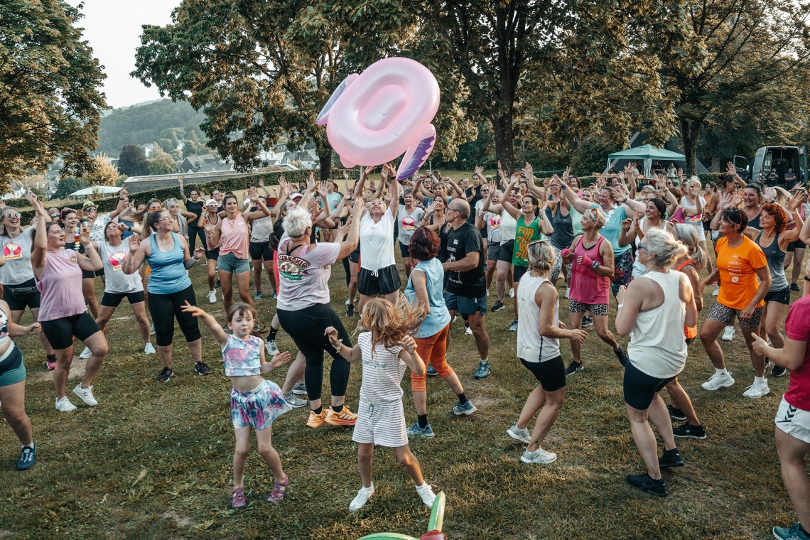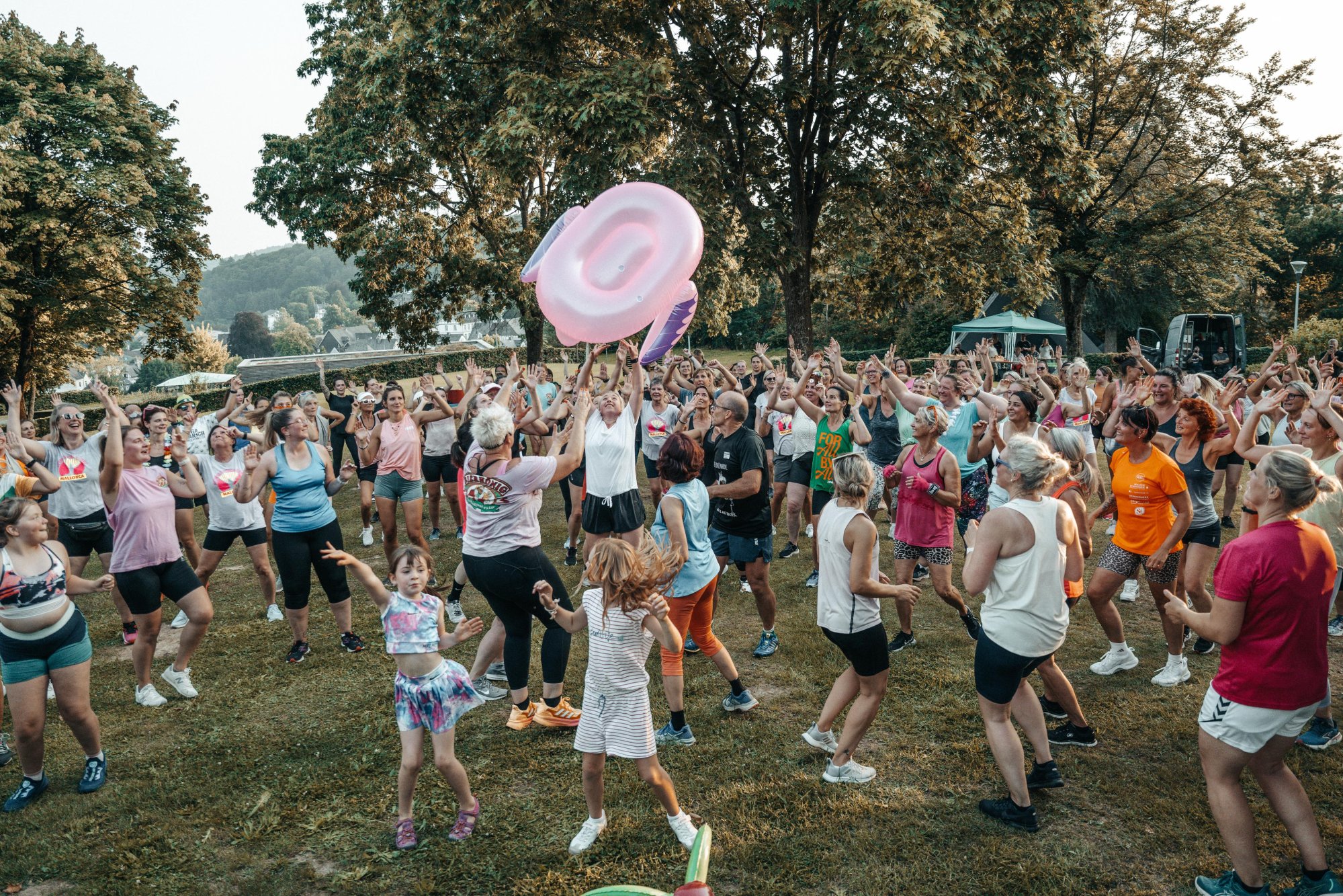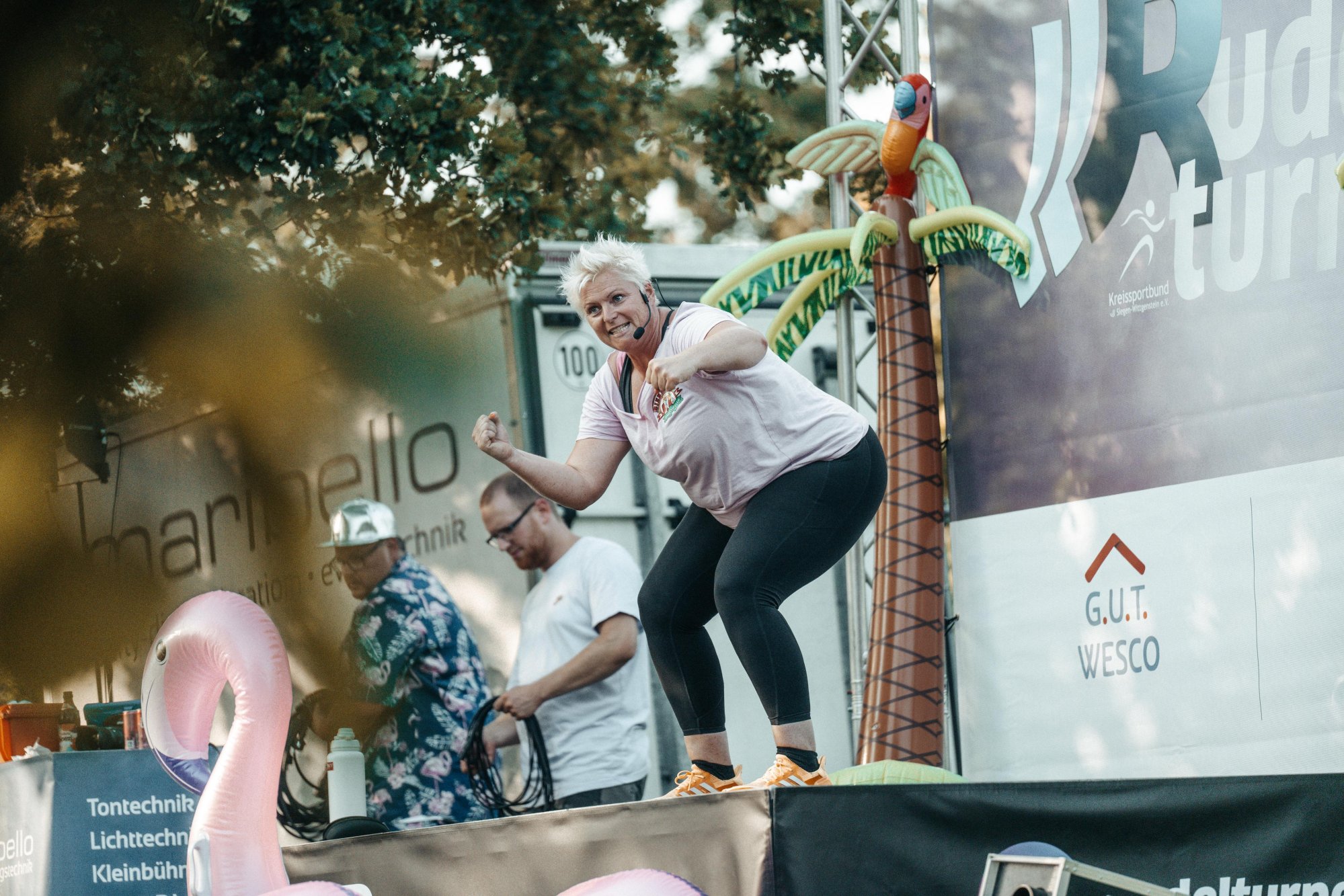 Freudenberg. Zum Abschluss der Kreistour machte das Turnrudel in der vergangenen Woche noch einmal Station in Freudenberg. Nachdem der Termin im Juli aufgrund des Wetters ausgefallen war, fanden sich diesmal trotz der Hitze einige Dutzend Sportbegeisterte im Kurpark ein, um eine knackige Workout-Einheit hinzulegen. Die Tanzschule StepUp sorgte im ersten Teil für mächstig Schweißperlen auf der Haut. Sonja Ising brachte im zweiten Teil dann Malle-Feeling in den Flecken.
