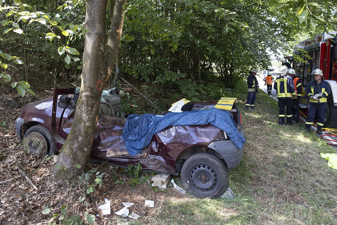 Der 20-Jährige wurde mit einer Sofortrettung und technischen Gerätschaften aus dem Auto befreit und an den Rettungsdienst übergeben. Mit dem Rettungshubschrauber Christoph 25 kam der Autofahrer ins Krankenhaus. Die Kreisstraße 6 war für die Dauer des Einsatzes komplett gesperrt. Der Unfallwagen wurde von einem Abschleppunternehmen geborgen.