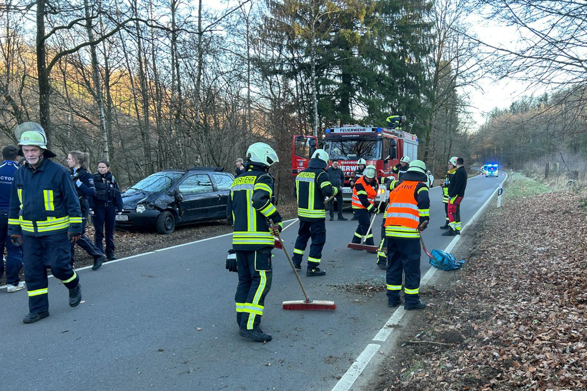 Ausgangs einer Rechtskurve verlor der Mann aufgrund Fahrbahnglätte die Kontrolle über seinen Wagen. Er kam anschließend nach links von der Fahrbahn ab und fuhr in den steilen Böschungsbereich. Hier kippte der Renault auf die Fahrerseite und rutschte noch mehrere Meter auf der Fahrbahn weiter. Der 41-Jährige konnte sich selbständig aus dem Auto befreien, musste aber anschließend verletzt mit dem Rettungswagen in ein Krankenhaus gebracht werden.
