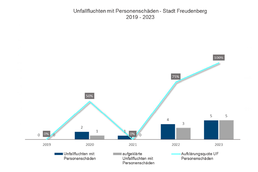 Etwas zurückgegangen ist die Zahl der Unfallfluchten von 73 im Jahr 2021 über 70 (2022) auf nunmehr 67, während die Aufklärungsrate in diesem Bereich von 38 auf 48 Prozent anstieg. Fünfmal gab es Unfallfluchten mit Personenschäden. Hier verzeichnet die Polizei eine einhundertprozentige Aufklärungsquote.