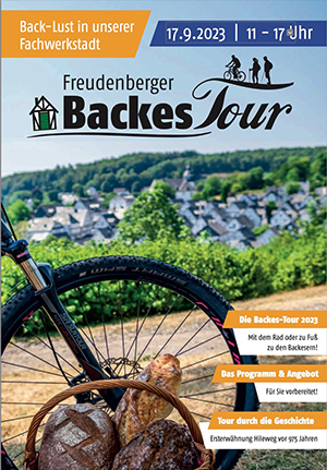 Nach dem Motto „Brot & Bike" haben Martin Breloer und Heinz Fischbach als begeisterte Radler eine Fahrrad-Tour ausgearbeitet, die alle acht Backeser im Freudenberger Stadtgebiet verbindet. Testfahrer zeigten sich von der 38-Kilometer-Strecke begeistert. Sie kann an jedem Backes begonnen und muss natürlich nicht vollständig absolviert werden. Auch Informationen dazu hält die Broschüre bereit.