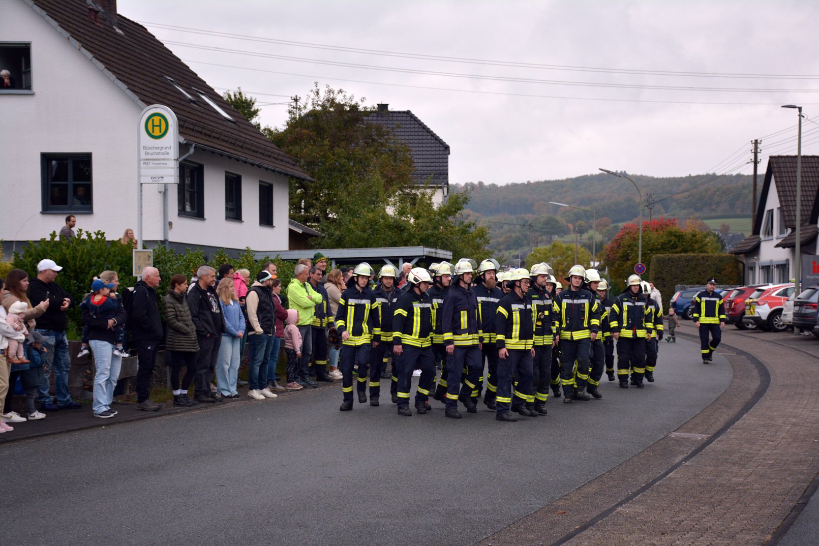Im Anschluss demonstrierte die Einheit Büschergrund traditionell, gemeinsam mit der Löscheinheit Oberholzklau-Bühl, mit dem sogenannten Ordnungsdienst, dass das Marschieren in Formation auch ein Teil des Zusammenhalts der Mannschaft, der Disziplin und des Gehorsams der Gruppe zeigt. Angeführt wurde die Gruppe vom Einheitsführer der Löschgruppe Büschergrund, André Hess.