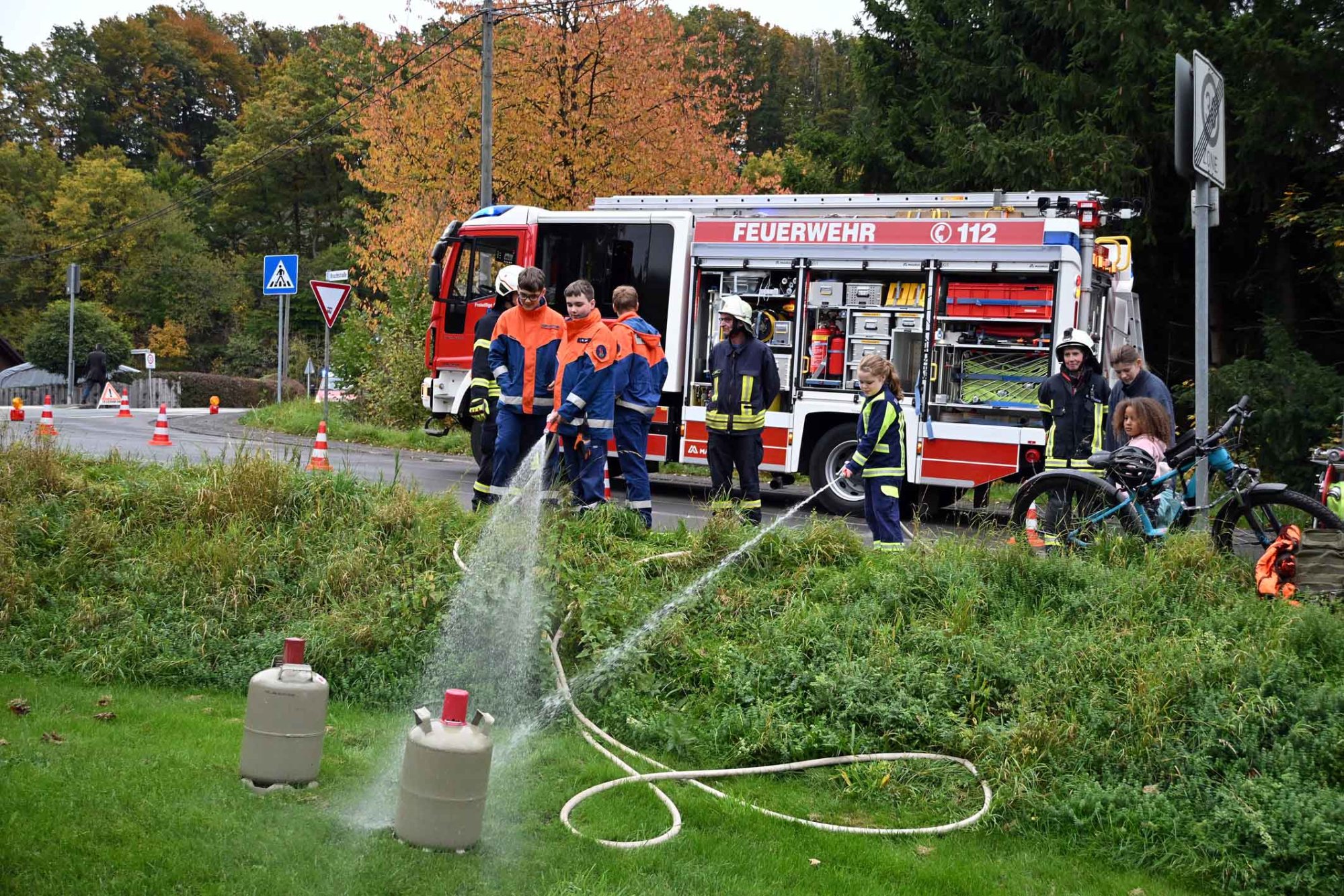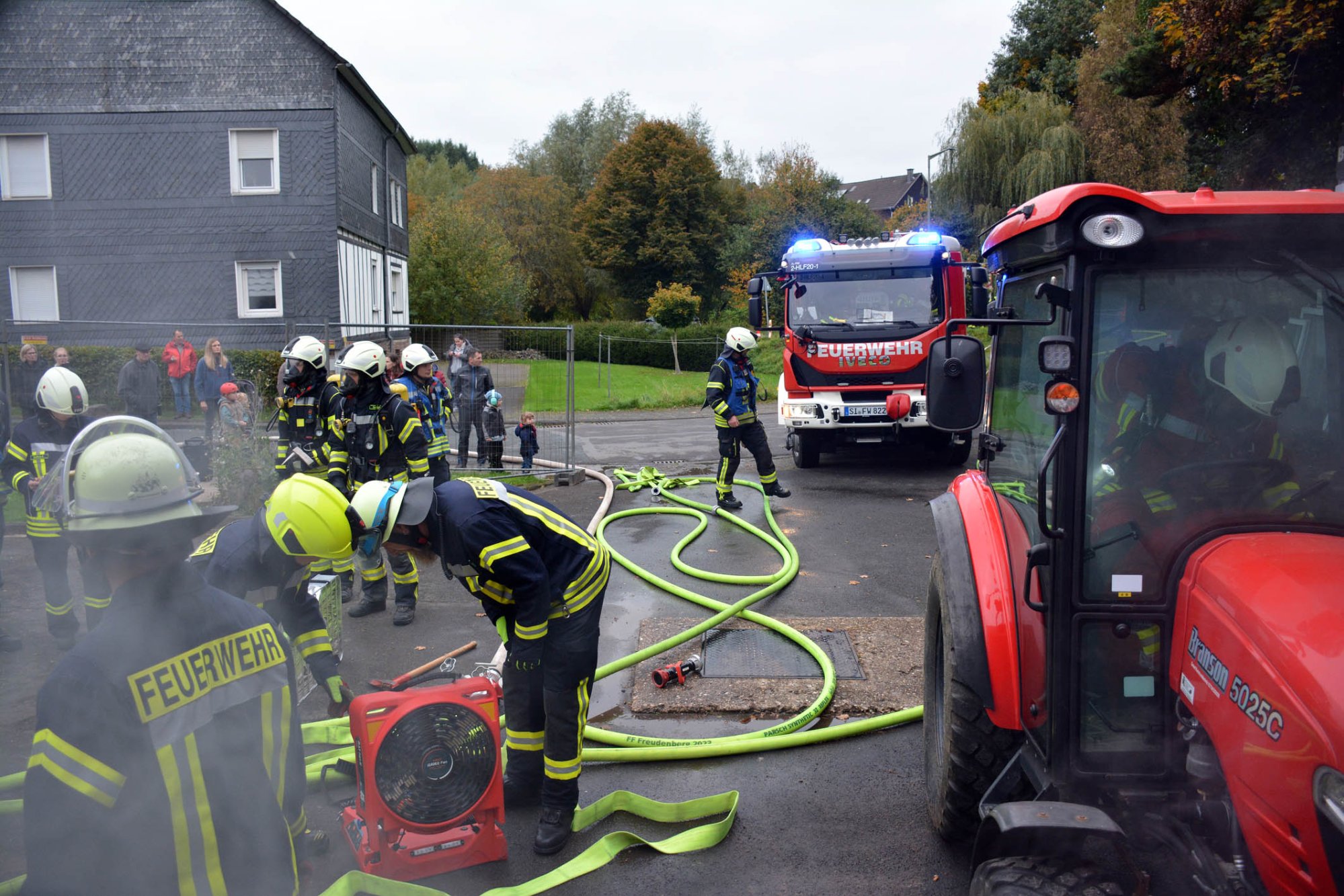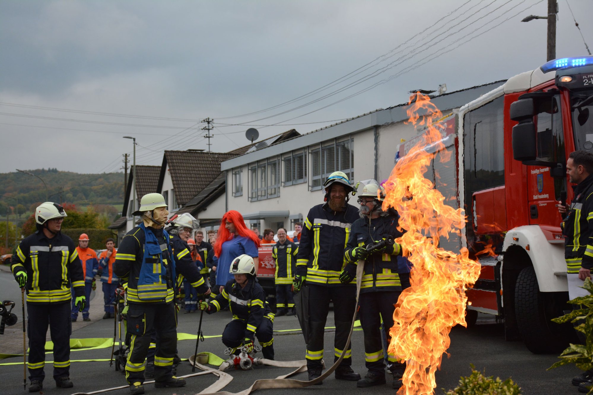 Büschergrund. Eine traditionelle und humoristische Herbstabschlussübung zeigte die Löscheinheit Büschergrund der Freiwilligen Feuerwehr Freudenberg am Samstagnachmittag. Vor zahlreichen Zuschauern, darunter auch Freudenbergs stellvertretender Wehrführer Maik Rother, der allen Beteiligten für den aktiven und engagierten Einsatz in dem zurückliegenden Jahr herzlich dankte.