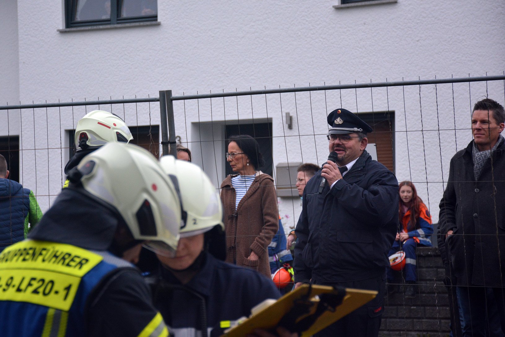 Als Vertreter der Stadt lobte Beigeordneter Julian Lütz alle Aktiven im Erwachsenen-, Jugend- und Kinderfeuerwehrbereich. Er bedankte sich für die geleisteten Einsätze, lobte die Begeisterung der Jugend- und Kinderfeuerwehr und freute sich darauf zu sehen, dass sich die Investitionen in die Freiwillige Feuerwehr der Stadt Freudenberg zur Sicherheit der Bürgerinnen und Bürger lohne.
