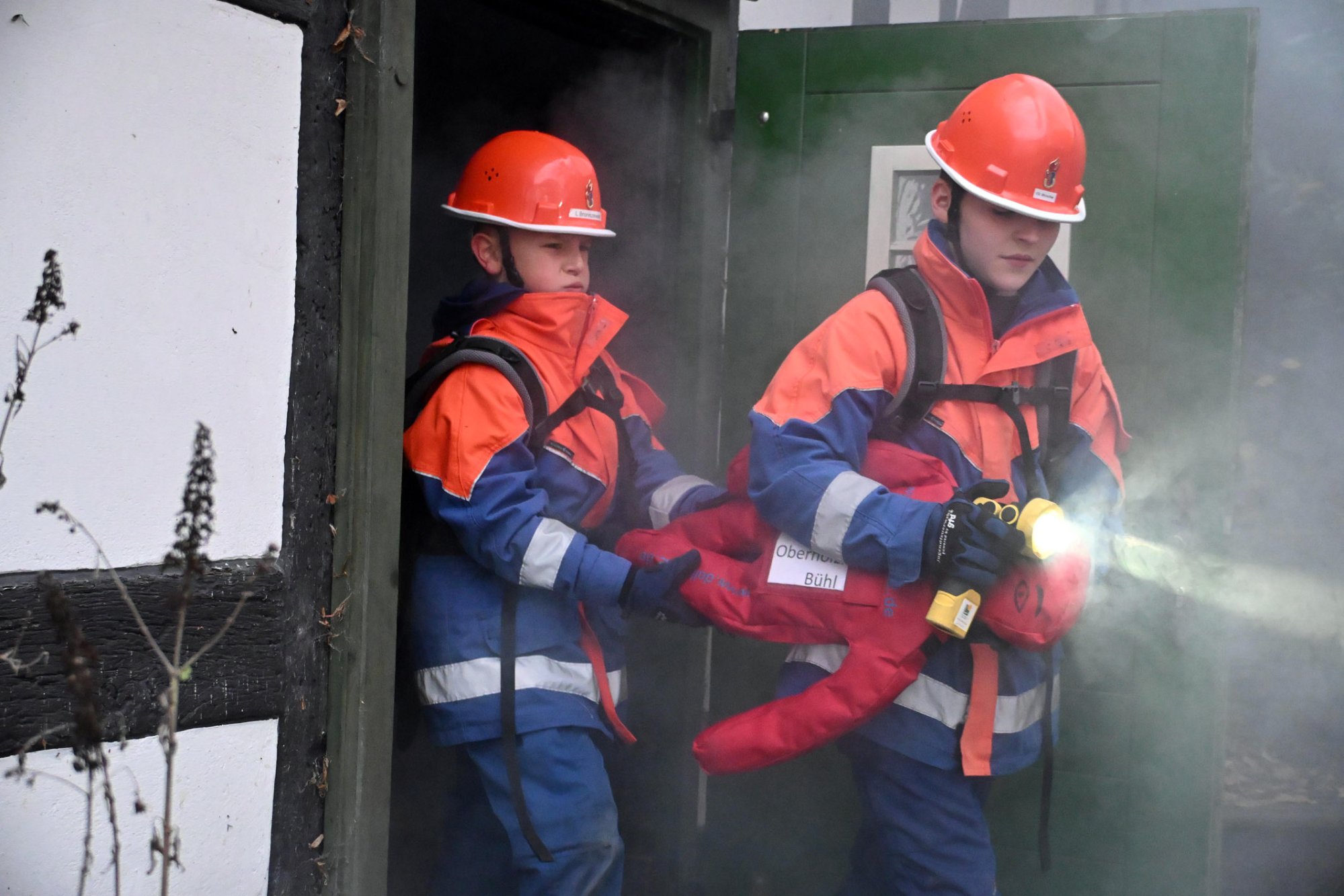 Im Abschnitt 1 wurde unter Atemschutz die vermissten Personen aus dem Gebäude gerettet und der Brand gelöscht. Der eingeklemmte Bauarbeiter musste mit schwerem technischem Gerät aus seiner misslichen Lage befreit werden. Hierzu kamen unter anderem Hebekissen aus dem Rüstwagen zum Einsatz. Die Einsatzkräfte arbeiteten Hand in Hand und so konnten alle gestellten Aufgaben schnell und sicher abgearbeitet werden.