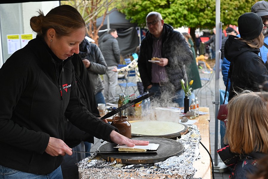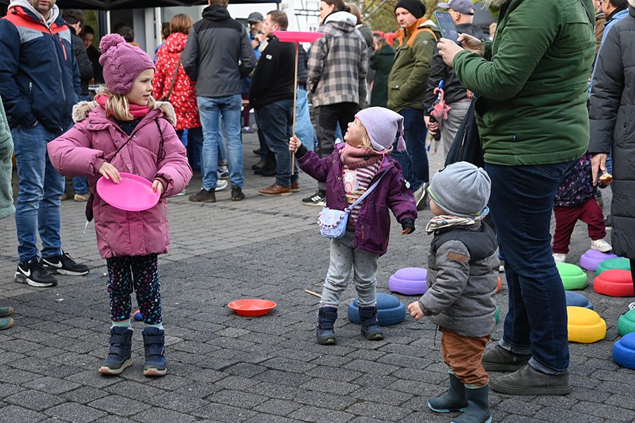 Die Kinder kamen vor allem auf dem Parkplatz der VR-Bank an der Olper Straße auf ihre Kosten. Hier standen Stelzen, Reifen, Bälle und andere Spielgeräte parat. Das größte Interesse galt allerdings der Strickleiter, die vom Leiterwagen der Feuerwehr herunterhing, während der Duft von Crepes und Waffeln in der Luft lag.