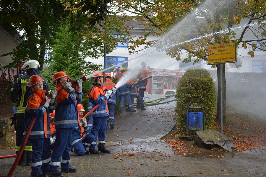 Das fand auch der Leiter der Feuerwehr, Rainald Thiemann, und lobte die Einatzkräfte für ihre geleistete Arbeit nicht nur an diesem Tag, sondern über das ganze Jahr hinweg. Auch der Leiter der Jugendfeuerwehr, Peter Badziong, und der zweite stellvertretende Bürgermeister der Stadt Freudenberg, Alexander Held, fanden nur lobende Worte für die Mädchen und Jungen der städtischen Jugendfeuerwehr. Im Anschluss gab es nach dem Aufräumen einen kleinen Imbiss und Getränke am Gerätehaus der Feuerwehr Niederndorf - praktisch, denn liegt es doch nur einen Steinwurf entfernt von der Freien Christlichen Schule.