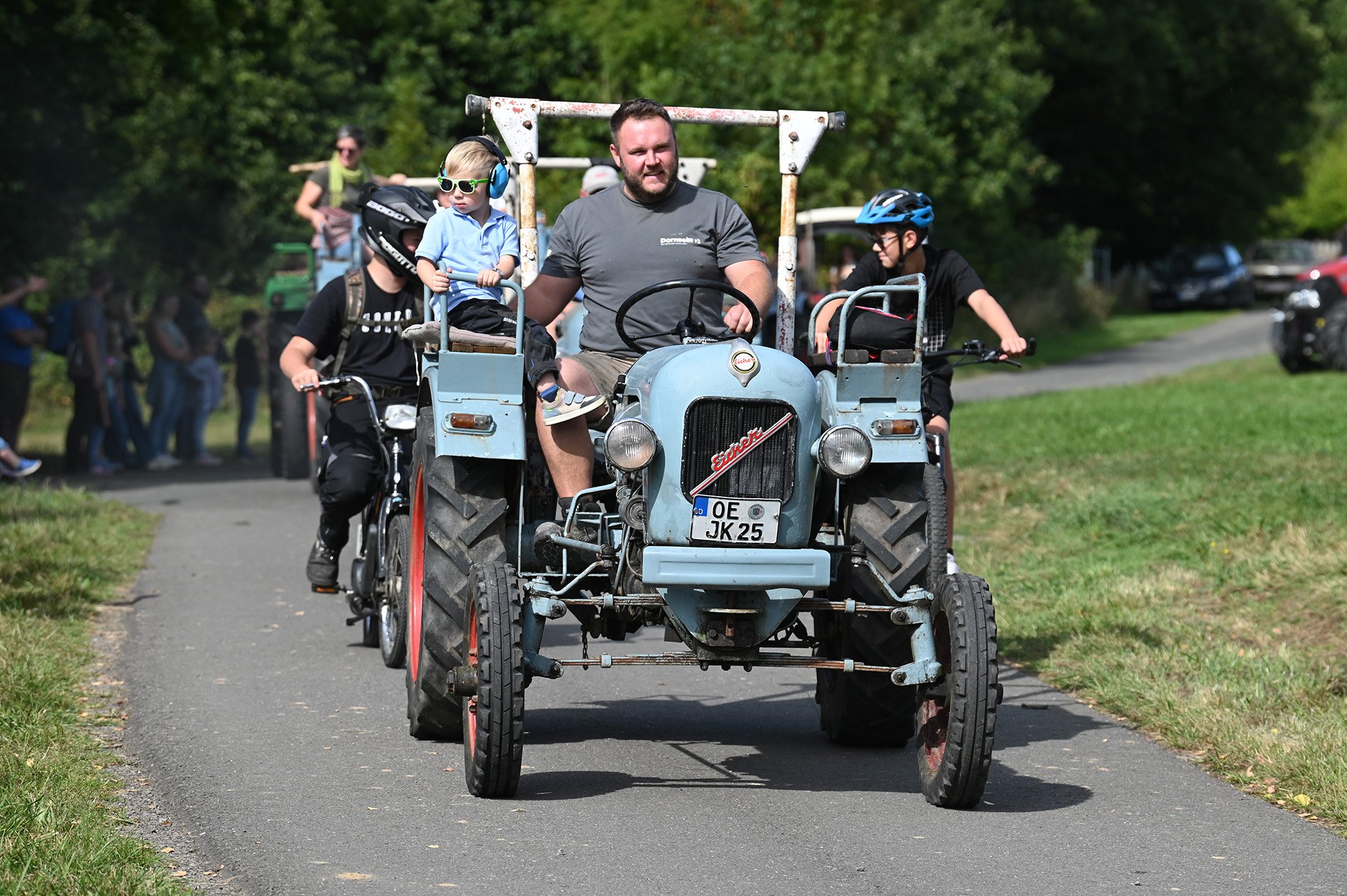 Büschergrund. Zum elften Mal hatten die Büscher Jungs am Samstagnachmittag zum Almabtrieb eingeladen - und mit rund 80 Traktoren, die bei bestem Spätsommerwetter am Osterberg Aufstellungnahmen war es eine rekordverdächtige Treckerparade, die sich diesmal kreuz und quer durch Büschergrund schlängelte. Wie immer hatte Ortsvorsteher Matthias Irle alles bestens vorbereitet, so dass dem bunten Korso und der anschließenden Feier im Jakobstal nichts im Wege stand.