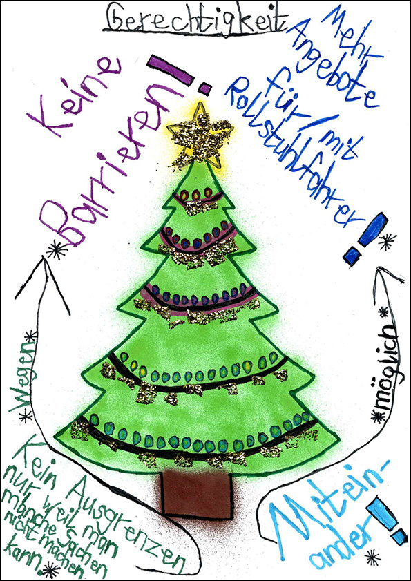 Weihnachten steht vor der Tür – die Zeit der Wünsche, des Lächelns und der Besinnlichkeit . Auch die Kinder, Eltern und Erwachsenen der Na und Gruppe und Handicap‑Gruppe des AWO‑Ortsvereins haben ihre ganz eigenen Vorstellungen davon, was das Herz warm werden lässt. In selbstgestalteten Texten und bunten Bildern haben sie ihre Wünsche festgehalten und zu einem Adventskalender vereint, der täglich ein kleines Kunstwerk enthüllt. Wir werden bis Weihnachten die Arbeiten an dieser Stelle präsentieren. Gleichzeitig werden die Bilder im Schaukasten an der AWO-Begegnungsstätte in der Schulstraße ausgehängt. Wir wünschen viel Freude beim Anschauen, ein bisschen Besinnlichkeit und eine wundervolle, friedliche Weihnachtszeit.
