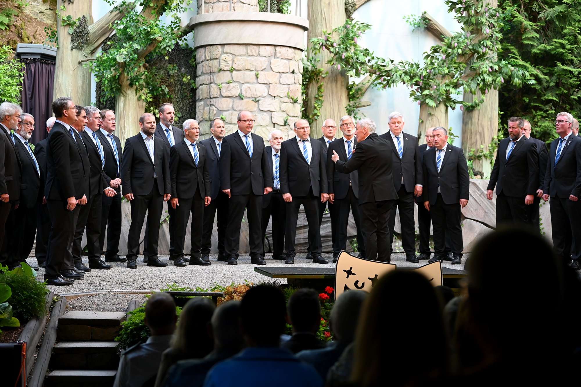 Aber bevor sich Anne (Julia Kölsch) und Fenton (Jochen Kretzer) endlich in den Armen lagen, machte der Männergesangverein Sangeslust Hünsborn den musikalischen Auftakt in die neue Spielzeit. Zweiter Vorsitzender Tim Müller zeigte sich erleichtert, dass "alles fertig geworden", sei. Die marode Mittelbühne, der neue Bühnenaufgang, Verbesserungen an der Akustik und die Sanierungsarbeiten an mehreren Gebäuden seien zusätzlich zum Probenbetrieb große Herausforderungen gewesen. Aber keine Sorge: "Wir haben zwar alle etwas Lampenfieber, aber Bock, wieder auf der Bühne zu stehen", so Müller.
