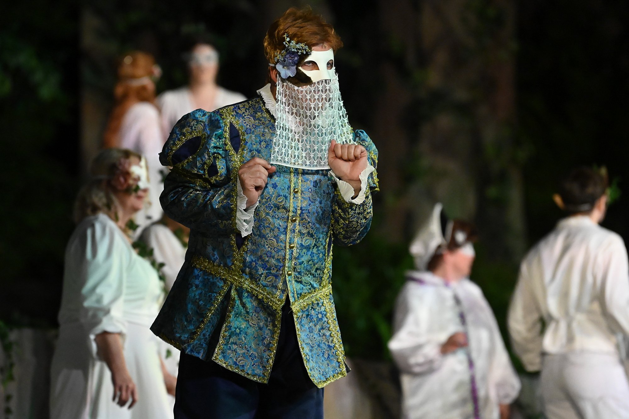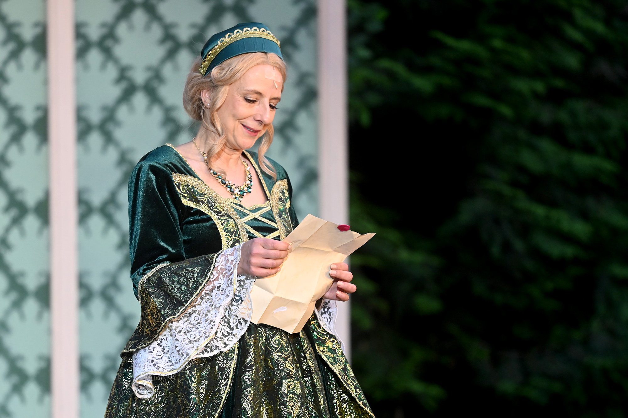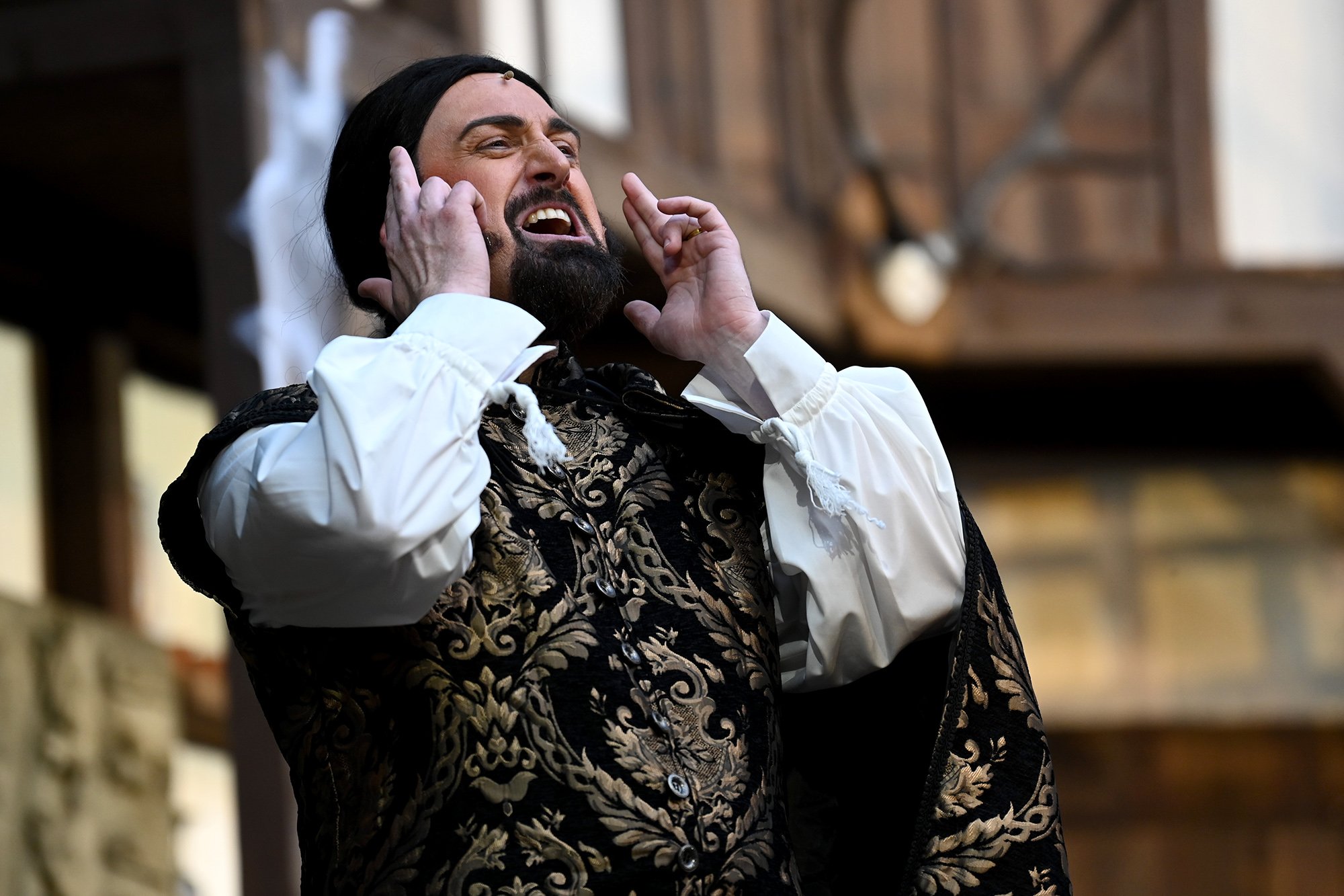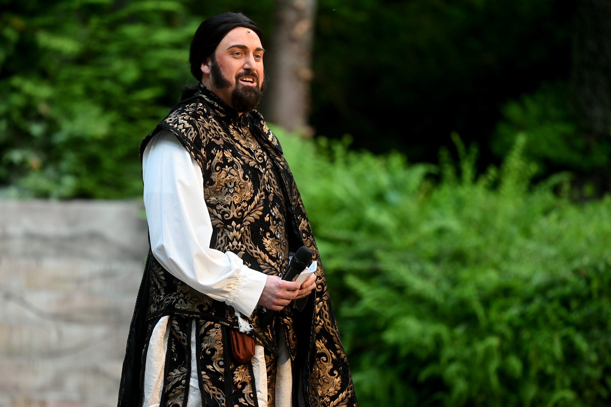 Parallel dazu soll Anne, die Tochter einer der angesehenen Aristokratinnen, verheiratet werden. Aber mit dem eitlen Doktor Cajun (Tim Müller), der sich mit großer Hingabe seinen Kotletten widmet, und Sir Hugh Evans (Frank Kölsch), der eher mit seinem hinreißenden walisischen Akzent als mit Tapferkeit und Leidenschaft glänzt, sind die Alternativen eher bescheiden. Aber schließlich ist da ja noch Fenton (Jochen Kretzer), der nicht nur als Feingeist brilliert, sondern in Person William Shakespeares dem Stück den erzählerischen Rahmen gibt. Seine Königin ist am Ende begeistert und würde den Stoff gerne einem englischen Theater anbieten. Der ist allerdings schon einer Freilichtbühne in Deutschland vesprochen...