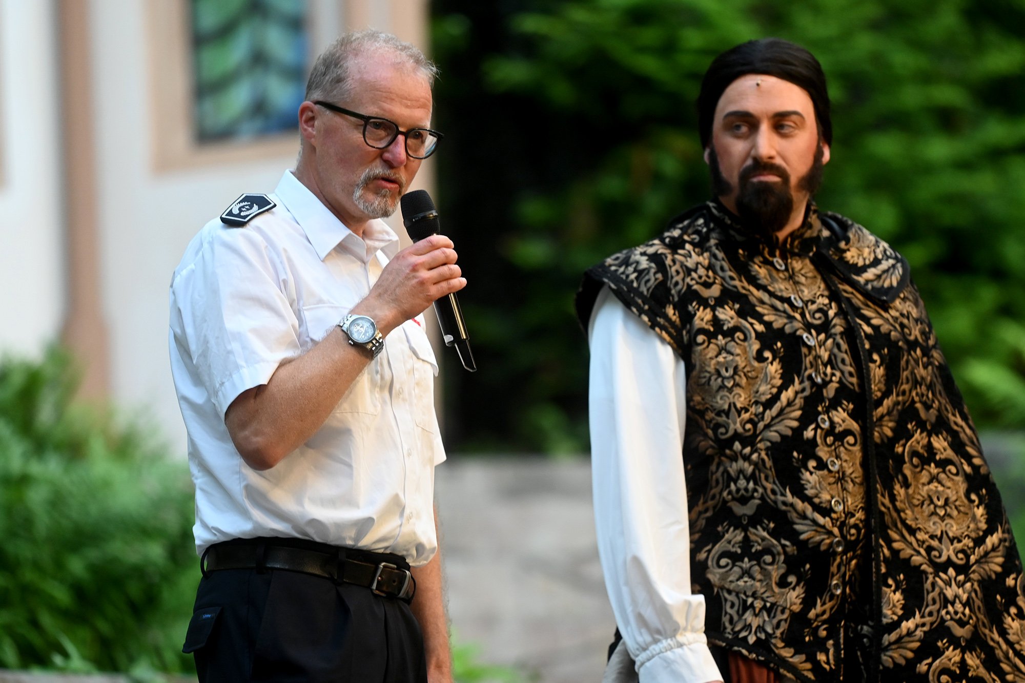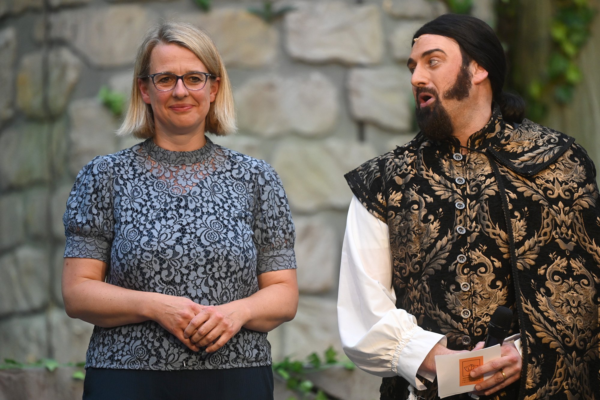 In diesem Jahr unterstützt die Bühne die Kinder- und Jugendfeuerwehr der Stadt Freudenberg. Deren Chef, Rainald Thiemann, sah eine Menge Verbindendes zwischen Freilichtbühne und Feuerwehr: "Die Leidenschaft, das ehrenamtliche Engagement und die besondere Aufmerksamkeit für die Kinder- und Jugendarbeit" seien nur einige Schnittstellen. Landrat Andreas Müller spoilerte, dass die Freilichtbühnen-Fassung im Gegensatz zum Shakespeare-Original eine Liebesgeschichte habe. Und Bürgermeisterin Nicole Reschke eröffnete nach dem Ständchen anlässlich ihres Geburtstag die neue Spielzeit.