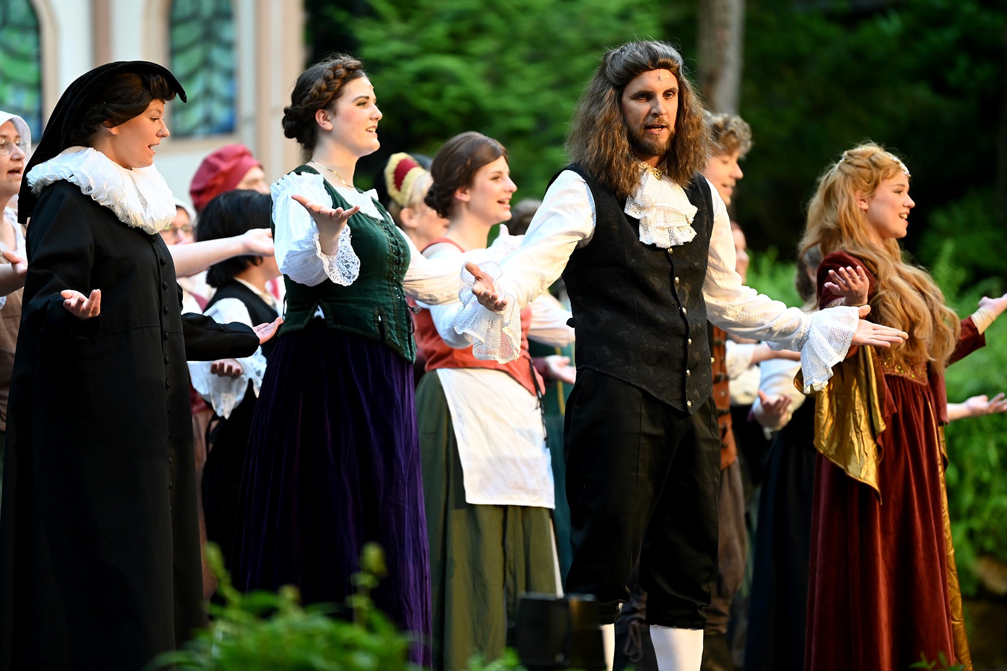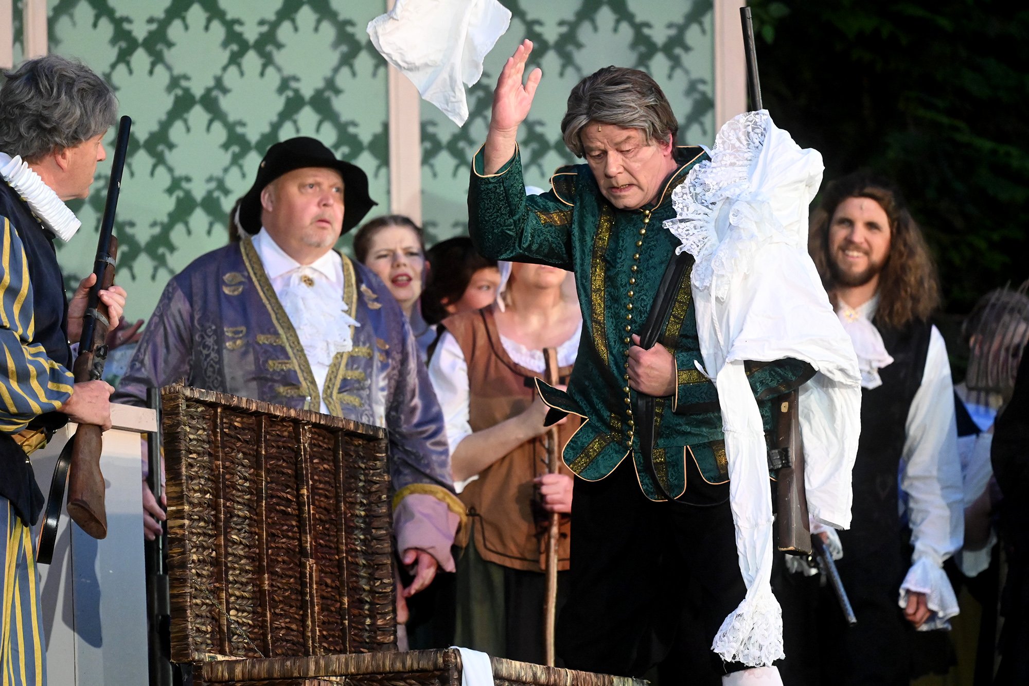 Freudenberg. Mit "Die lustigen Weiber von Windsor" feierte die Freilichtbühne Freudenberg am Samstagabend die begeisternde Premiere ihrer 71. Spielzeit. Die Zuschauerinnen und Zuschauer am Kuhlenberg bekamen eine kostümprächtige und temporeiche Kommödie zu sehen, die am Ende sogar ganz nach dem Geschmack ihrer Majestät Königin Elisabeth I. endete.