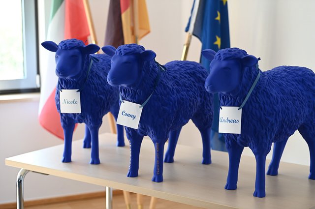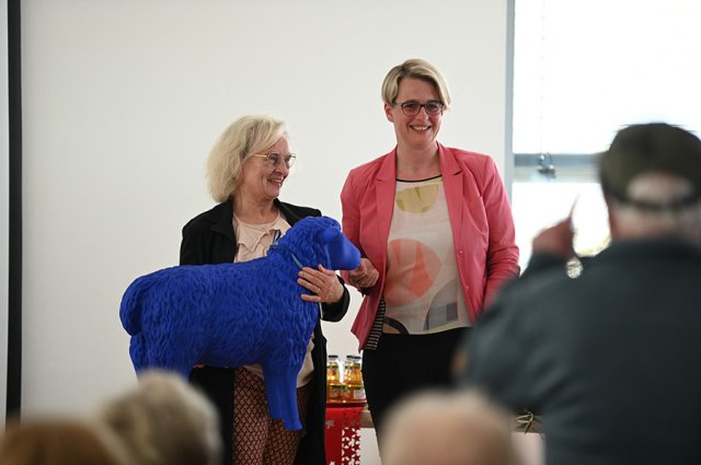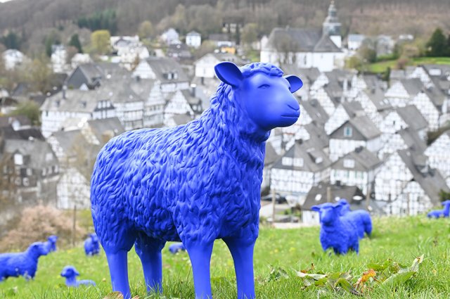 Hauptakteure waren allerdings die 30 blauen Schafe der "Friedensherde", einer Initiative der Künstler Beramaria Reetz und Reiner Bonk. Erstmalig waren sie 2009 in Venedig zu sehen und sind inzwischen durch über 160 Städte gereist. Dank des Lions-Clubs konnten die Schafe nach Freudenberg geholt werden; das erste erwarb die Bürgerstiftung "Gut. Für Freudenberg" für 300 Euro. Schaf Nr. zwei geht nach Siegen ins Kultur!Büro.