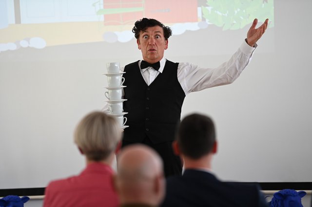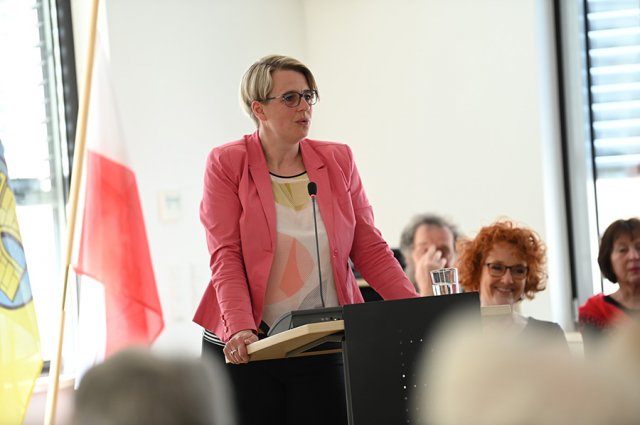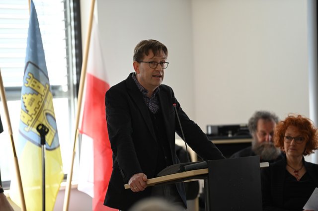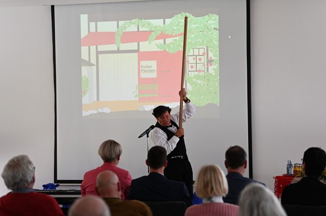 "Wo in diesem Flecken mag die Kultur wohl stecken", fragte Moderator Volker Bunse, als er den Festakt im Ratssaal mit unterhaltsamen Versen eröffnete, und gab die Antwort natürlich gleich selbst: "Im Kultur-Flecken". Die "Schmiedinnen der Kultur" hätten den "Silberstern am Horizont" gesucht und gefunden und den Verein im Jahr 2003 gegründet, mit dem Ziel, ihren Heimatort zu ästhetisieren und eine Brücke zwischen den Menschen zu schlagen. Bürgermeisterin Nicole Reschke nannte den Kulturflecken "eine Bereicherung für Freudenberg", nicht umsonst sei der Verein 2021 unter anderem für den Kulturfleckenweg mit dem Heimatpreis der Stadt ausgezeichnet worden. "Kulturelle Vielfalt ist nicht einfach da", so Landrat Andreas Müller, "sie braucht engagierte Menschen wie sie". Auch Jens van Heyden, Leiter des Kultur!Büro beim Kreis Siegen-Wittgenstein, überbrachte seine Glückwünsche: "Freudenberg, du kannst stolz sein auf diesen Verein."