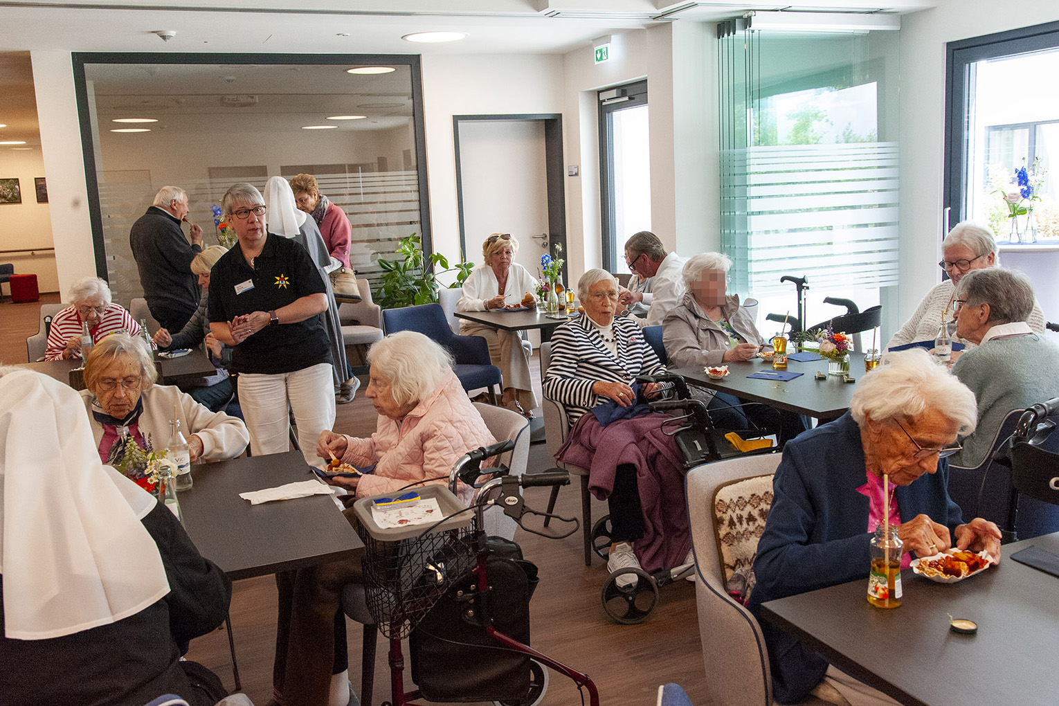 Bei kühlen Getränken, die das Team des Technischen Dienstes vorhielt und leckerer Currywurst und Mini-Kuchen von der Friedenshortküche, nutzten die Gäste noch die Gelegenheit zum Smalltalk. Außerdem wurden Führungen durch das Gebäude angeboten.