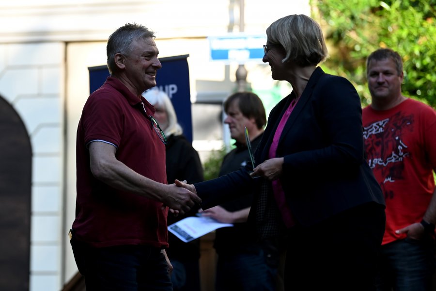 Freudenberg. Reichskanzler Constantin Fehrenbach hätte sicher auch applaudiert. Aber das Konterfei des Politikers aus der Weimarer Republik war nur Kulisse der Sportlerehrung, die erstmals auf der Freilichtbühne stattfand. Und während sich die Darsteller bis zur Premiere von "Weekend im Paradies" noch bis Samstag gedulden müssen, gehörte am Donnerstagabend die Bühne für zwei Stunden den erfolgreichsten Sportlerinnen und Sportlern der Stadt Freudenberg.