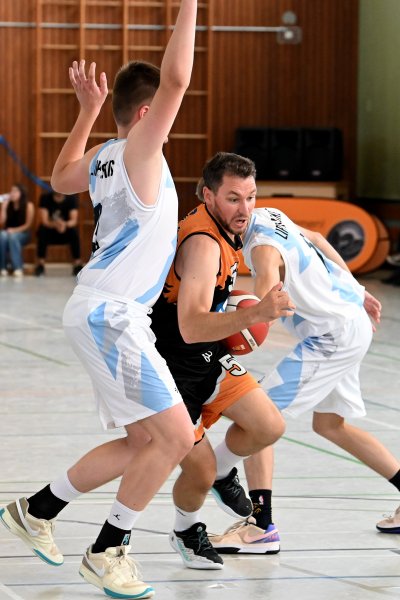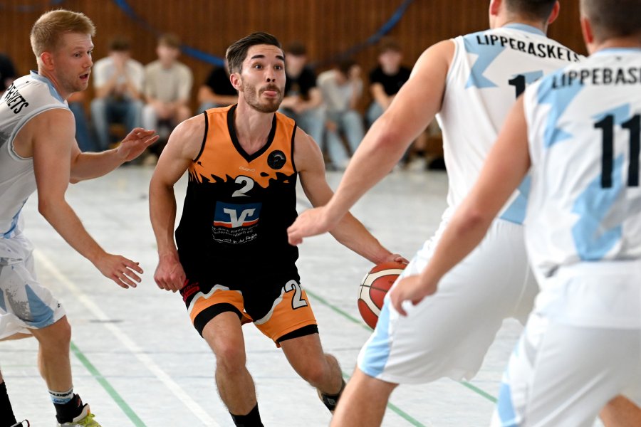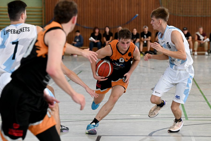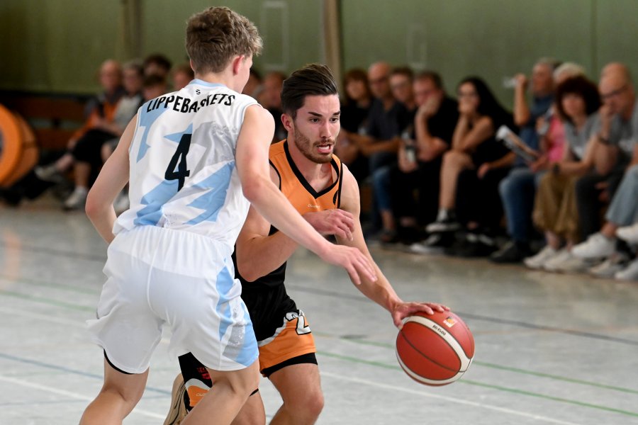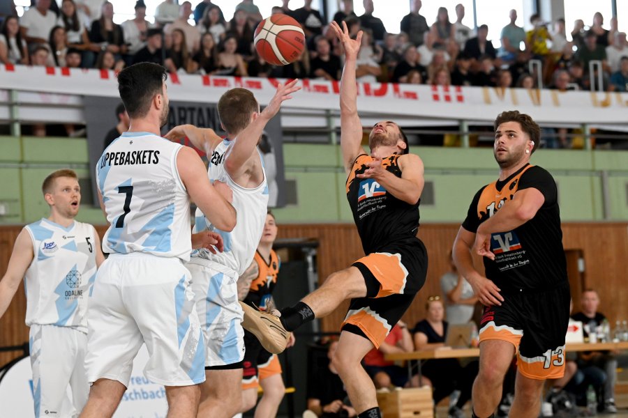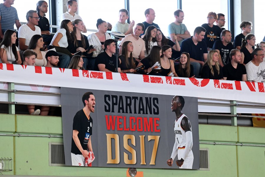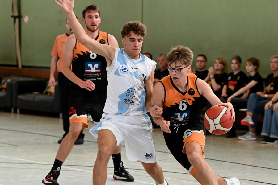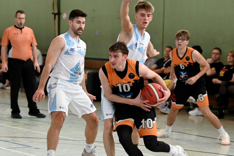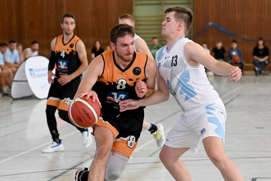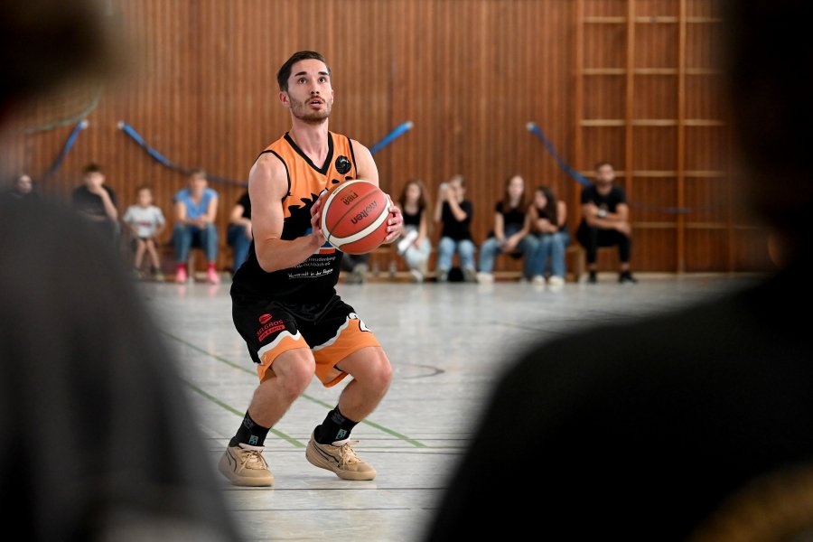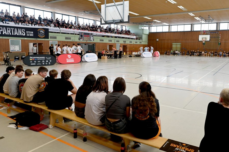 Schade, aber der tollen Stimmung tat das keinen Abbruch. Die 400 Zuschauer hatten nach der Sommerpause wieder richtig Lust auf Basketball. Die aufgestellten Zuschauerbänke direkt am Spielfeldrand, auf denen auch Landrat Andreas Müller und Bürgermeisterin Nicole Reschke platznahmen, verwandelten die Sporthalle zeitweise in einen echten Hexenkessel.