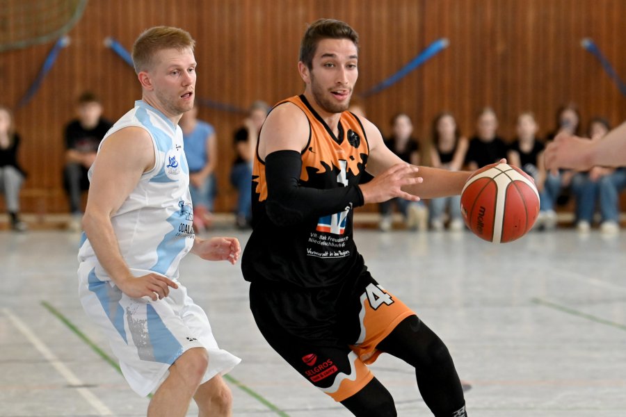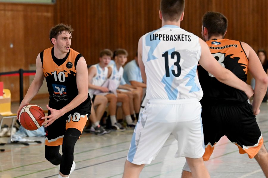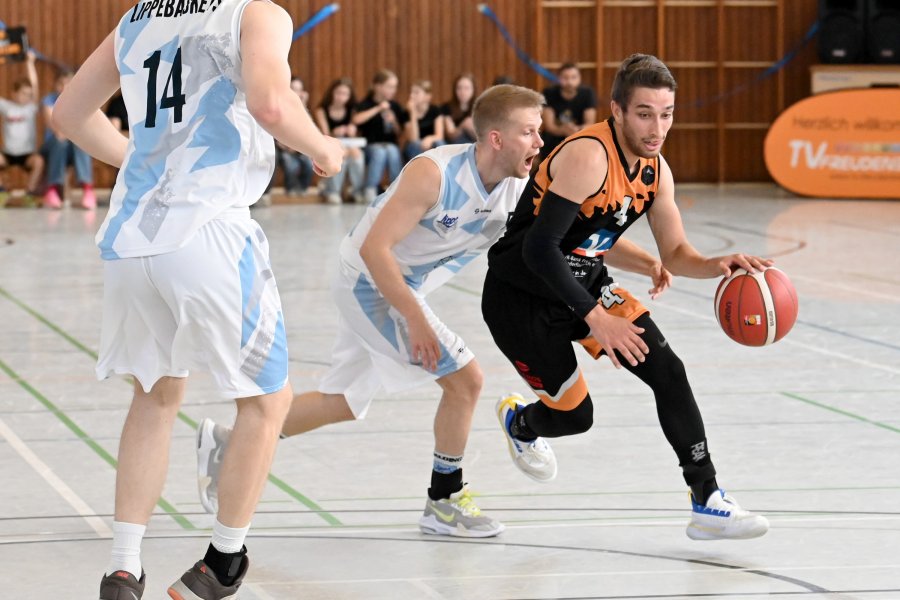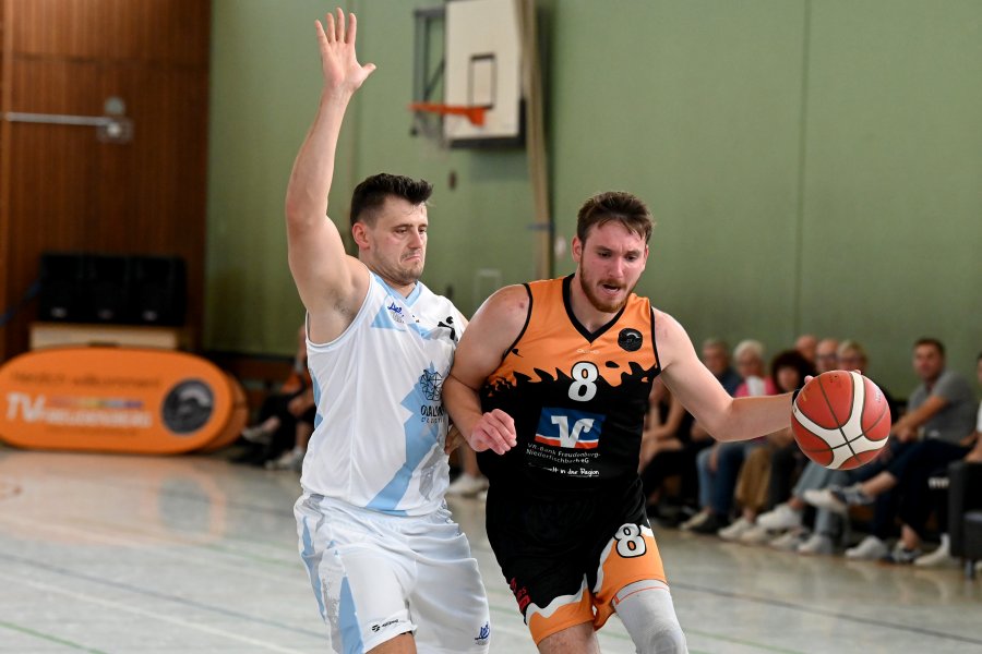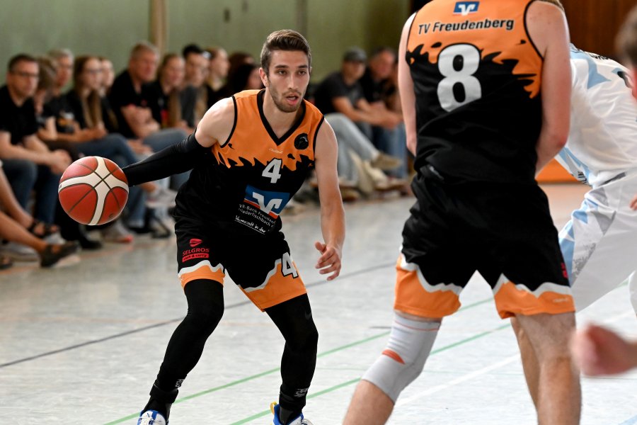 Einziges Problem: Die Spartaner liefern von der ersten bis zur letzten Minute einem Rückstand hinterher. Die Gäste aus dem nörlichen Ruhrgebiet ließen sich von der Atmosphäre überhaupt nicht aus der Ruhe bringen, erspielten sich schnell ein kleines Punktepolster, das sie praktisch über die gesamte Spielzeit trug. Die Freudenberger agierten dagegen nervös und zu hektisch unterm Korb, zu unpräzise von der Freiwurflinie (40 %), präsentierten sich allerdings mit acht Dreiern zumindest aus der Distanz treffsicher. Als Miguel Ben Meftah mit der Halbzeitsirene einen Dreier verwandelte und auf 31:38 verkürzte, glich die Halle kurzzeitig einem Tollhaus.